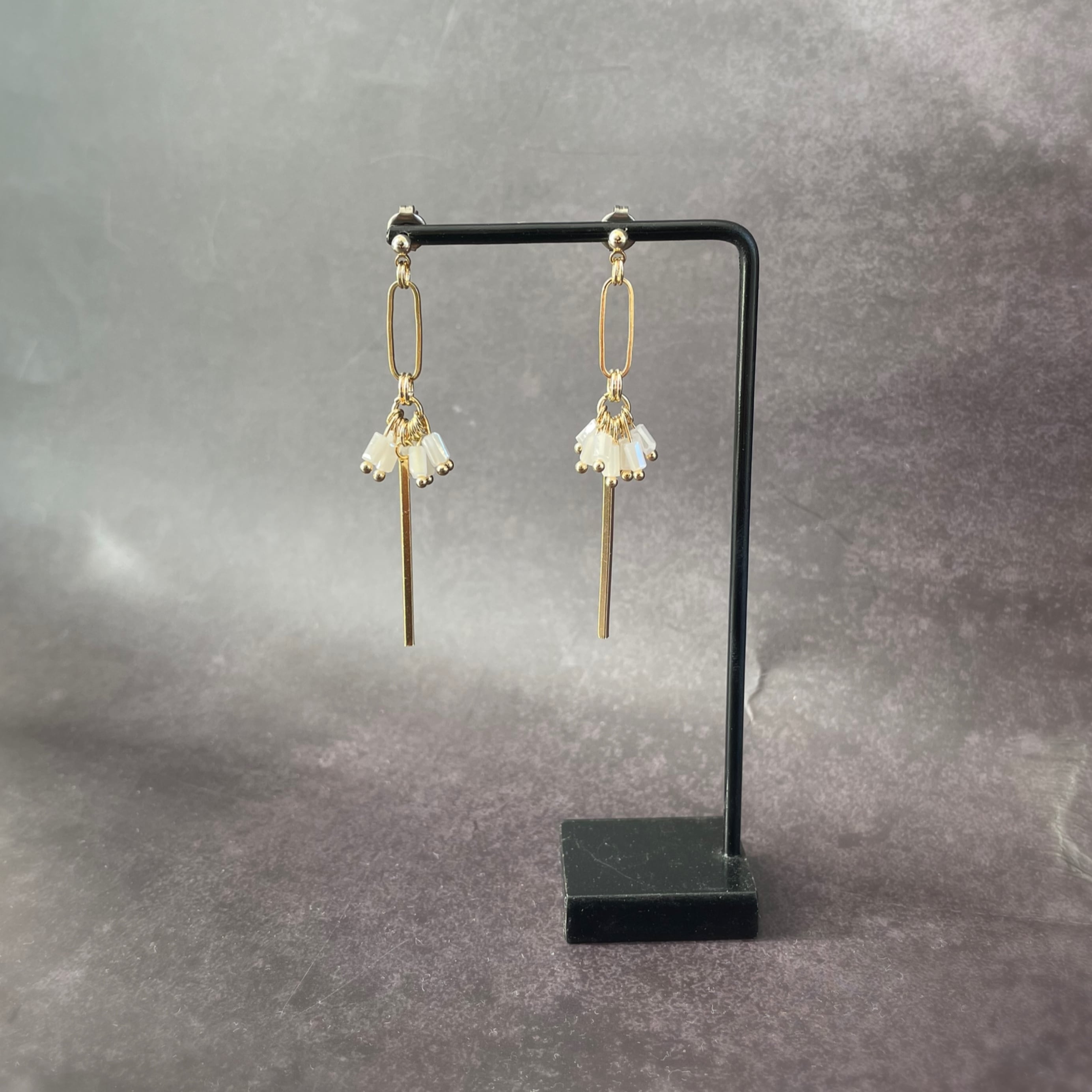 ホワイトビーズ ジャラジャラピアス